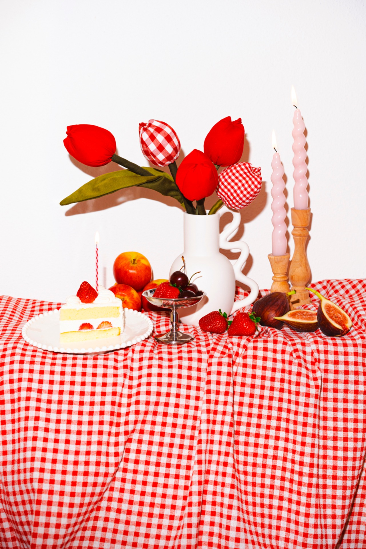ひとつひとつ心を込めて縫った、布のチューリップ。