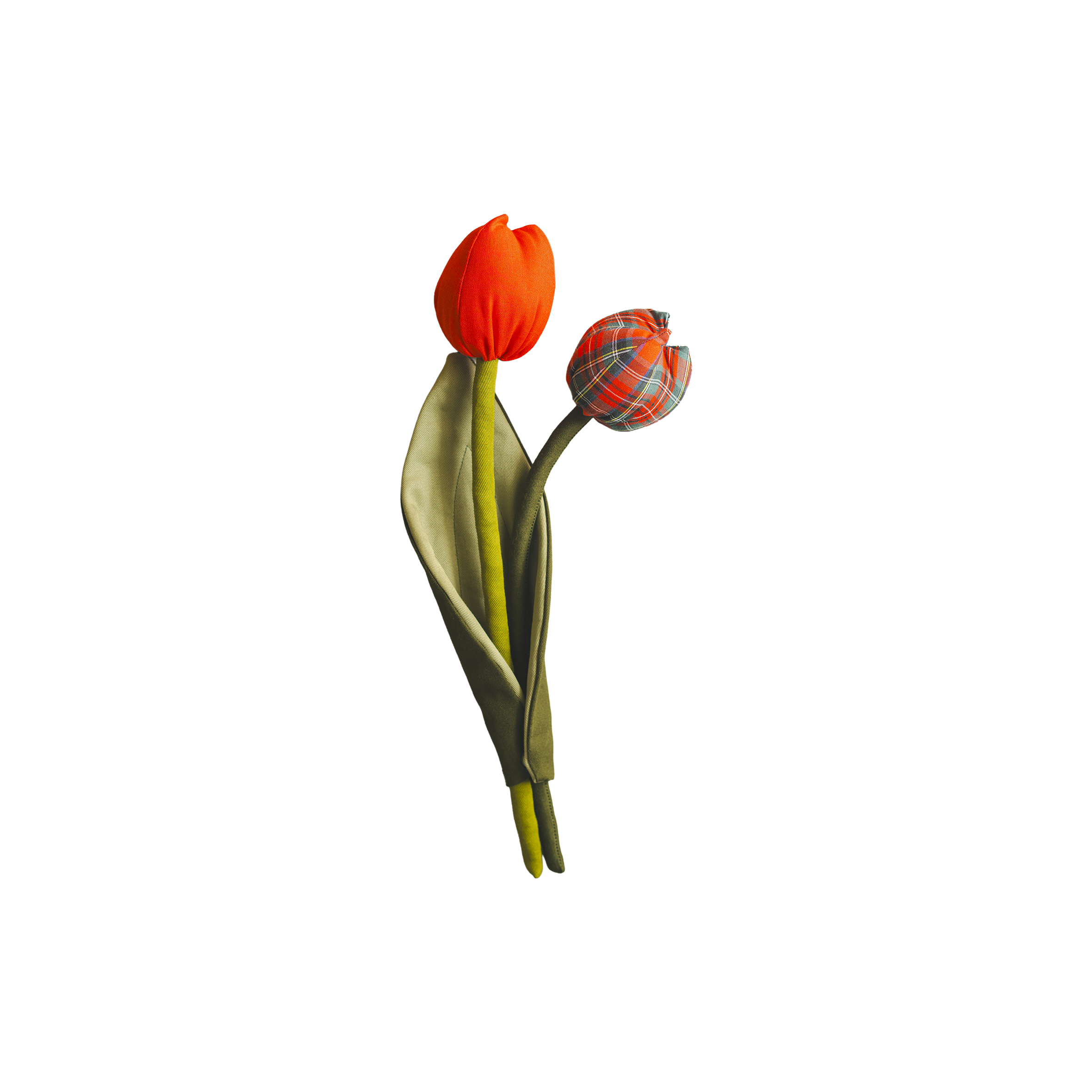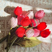 ひとつひとつ心を込めて縫った、布のチューリップ。